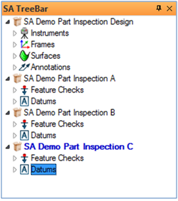 First, the design phase can be skipped entirely if necessary. As soon as Annotations are available, Feature Checks and Datums can be built. By simply trapping measurements to each of the Datums and Feature Checks, you can associate points directly, as if you were trapping points to a relationship (the only difference here is that you have to decide where to take the measurements). Both the Datums and the Feature Checks show up in the Inspection tab of the SA Toolkit, making it easy to progress through the features.