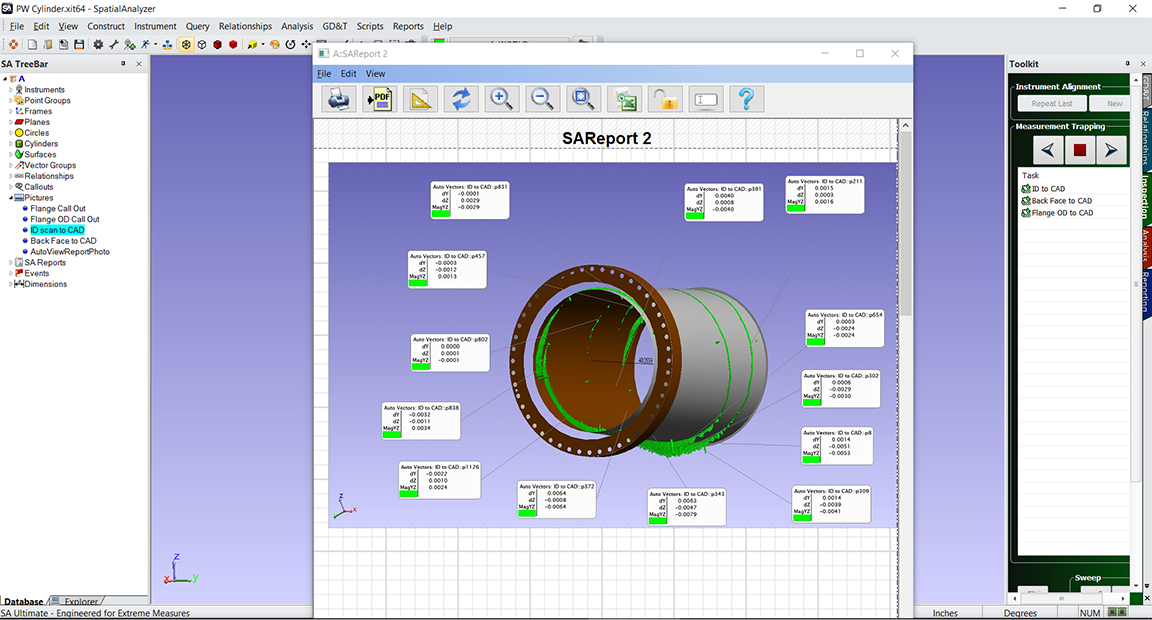 Powerful, versatile, and user-friendly, SA can simultaneously communicate with virtually any number and type of portable metrology instruments. This includes laser trackers, arms, laser radars, scanners, projectors, theodolites, total stations, and photogrammetric devices–all featuring a common interface for each instrument class.